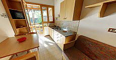 So wohnen Sie: Die Mobilheime und Bungalows sind aufwendig ausgestattet und komfortabel eingerichtet. Alle mit Klimaanlage, Heizung, voll ausgestatteter Küchenzeile mit 4-Flammen Gasherd, SAT-TV, teilweise mit Wi-Fi, privater Parkplatz, möblierte und überdachte Holzveranda.