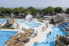 Sport & Unterhaltung: Große Poollandschaft mit Kinderbecken, Wasserrutsche (ca. 900 qm), Sonnenschirme und Liegestühle (gegen Gebühr). Beachvolleyball, Fußball, Volleyball, Boccia, Fitness-Bereich, Bogenschießen, Fahrrad-Verleih, Segel-Kurse, Animation mit sämtlichen Programmen für jedes Alter.