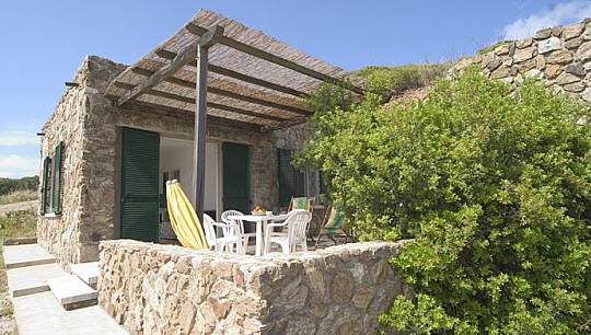 Typ 61 Villa Mirto: 2-Zimmer-Villa Mirto für 4 Personen; Wohn-/Schlafraum mit Doppelschlafcouch, Essplatz, Küchenzeile, Doppelzimmer, Dusche/WC, große möblierte Terrasse mit Grill.